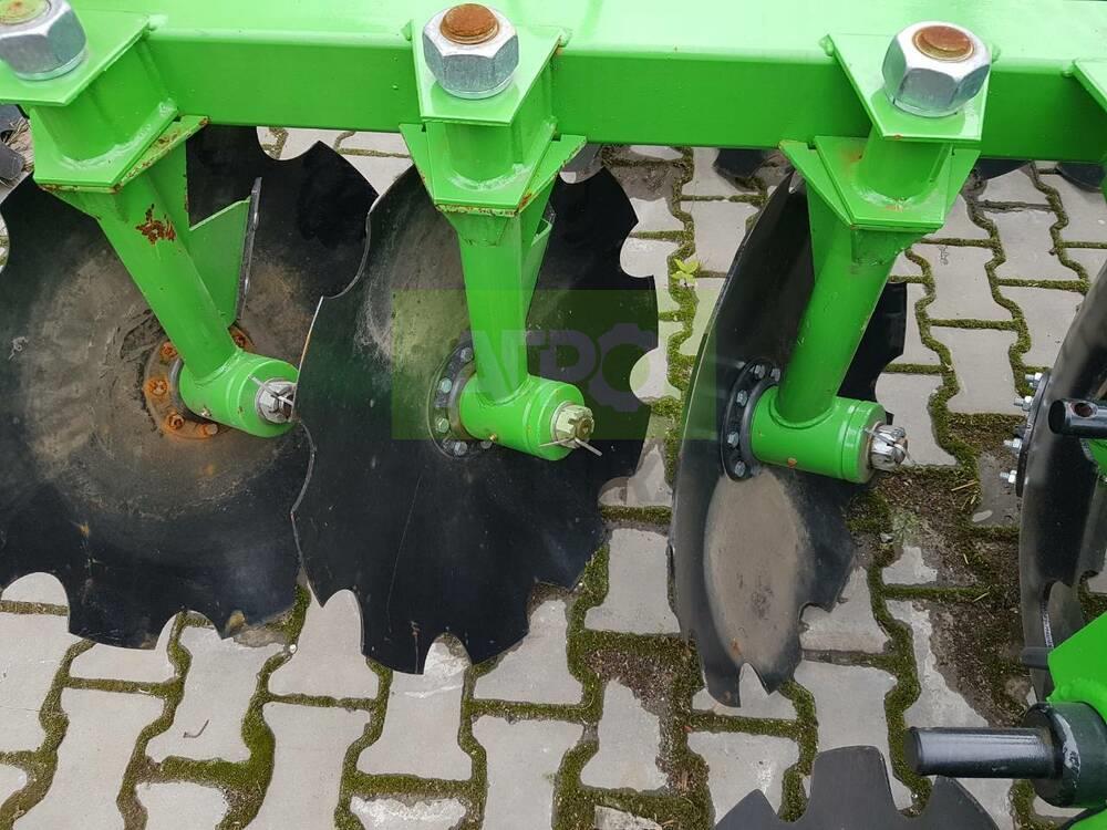 Ціна вказана за дископлуг 1,8 м. В залежності від потужності трактора дискові плуги мають різну ширину захвату: 1,8 м; 2,1 м; 2,4 м. Дископлуг 2,1 м. на 12 дисків. - Технічна характеристика: - Тип: навісний - Ширина захвату 2,1 м - Продуктивність га/год: 1,4-1,7 - Глибина обробки грунту, см: 8-20 - Діаметр дисків 660 мм - кількість батарей та дисків: 2*6 - Кріплення дисків: окрема стійка для кожного диска - Каток (грудобій) в комплекті - Робоча швидкість руху до 10 км/год - Вага машини 730 кг - Довжина мм: 1920 - Ширина мм: 2405 - Висота мм: 1140 - Обслуговуючий персонал – 1 людина - Потрібний трактор ЮМЗ, МТЗ Дискові плуги призначені для обробки ґрунтів будь-якого типу на глибину 5-18 см. Плуг дозволяє здійснити розпушування землі, що забезпечує відмінне насичення киснем та вологою, створюючи сприятливі умови для зростання рослин. Плуги даного типу є універсальним інструментом для землеобробки і функціонально виконують роботу плуга, культиватора та дискової борони. Диски плуга кріпляться на окремій стійці та можуть мати різну форму, в залежності від призначення. Осі обертання дисків розташовані під певним кутом, що дозволяє захопити нижній шар ґрунту, забезпечуючи відмінну обробку, при цьому знос дисків буде менший ніж у дискової борони. Конструктивні особливості та переваги плугів: - наявність диску типу «ромашка»; - є можливість регулювання кожного диска; - менша енергоємність обробки ґрунту за рахунок роботи дисків під кутом; - можливість глибини обробки землі; - диски захищені від налипання ґрунту завдяки наявності чистиків; - рівномірна обробка по всій площі. Дисковий плуг дозволяє здійснити ефективну обробку ґрунту, покращуючи його якість, в свою чергу це позитивно впливає на розвиток рослин. Післяурожайна обробка площ дозволяє виконати зрізання стерні. Дискові плуги прості в плані експлуатації та обслуговування. Агротехніка Куликів займається реалізацією сільгосптехніки високої якості. В нашому асортименті Ви знайдете обладнання та агрегати для обробки землі, посівних робіт та збору врожаю.