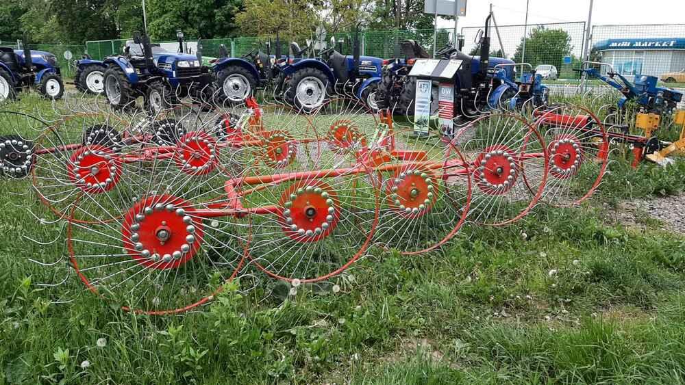 ☀️ Грабарка «Сонечко» на 5 секцій — потужна сіноперекидачка для трактора Грабарка-сіноперекидачка типу "Сонечко" (5 коліс) — дієвий інструмент для ворошіння, перекидання та згортання сіна та скошеної трави. Ідеальна для заготівлі кормів у невеликих і середніх господарствах. 🔧 Технічні параметри: Кількість секцій: 5 (5 коліс) Тип кріплення: навісна на триточку Робоча ширина в режимі згортання: 2.1 м Робоча ширина в режимі ворошіння: до 3.1 м Продуктивність: до 1.5 га/год Робоча швидкість: до 10 км/год Габарити (ШхВхД): 2.2 × 1.2 × 4.3 м Вага: 150 кг 💡 Завдяки змінному положенню коліс, грабарку можна застосовувати в двох режимах: для згортання валків або для ворошіння сіна. Підходить для роботи з мінітракторами та тракторами потужністю від 24 к.с.