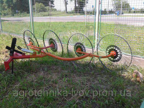Гребка сонечко на 4 колеса — надійна грабарка для згрібання сіна Гребка-сонечко на 4 колеса — це компактна й ефективна сіноперекидалка, призначена для перекидання та збирання скошеної трави, люцерни, сіна та інших рослинних решток. Завдяки невеликій вазі (всього 130 кг), гребка ідеально підходить для роботи з мінітрактором або легким трактором, забезпечуючи високу маневреність та продуктивність. Чому варто купити саме цю гребку: 🔁 2 режими роботи — збирання або перекидання валків; ⚙️ Робоча ширина до 2.8 м — ідеально для ділянок до 1.2 га/год; 🚜 Легка у використанні — агрегатується з тракторами від 18 к.с.; 🔩 Міцна та проста конструкція — мінімум обслуговування; 📦 Підходить для заготівлі сіна та догляду за кормовою базою. Технічні характеристики: Кількість коліс: 4 Робоча ширина: до 2.8 м Продуктивність: до 1.2 га/год Робоча швидкість: до 10 км/год Габарити: 1.7 × 1.2 × 3.5 м Вага: 130 кг 🟢 Грабарка сонечко на 4 колеса — це оптимальний вибір для невеликих господарств, які цінують простоту, надійність та ефективність при згрібанні сіна. Замовляйте зараз — і полегшіть заготівлю кормів уже цього сезону!