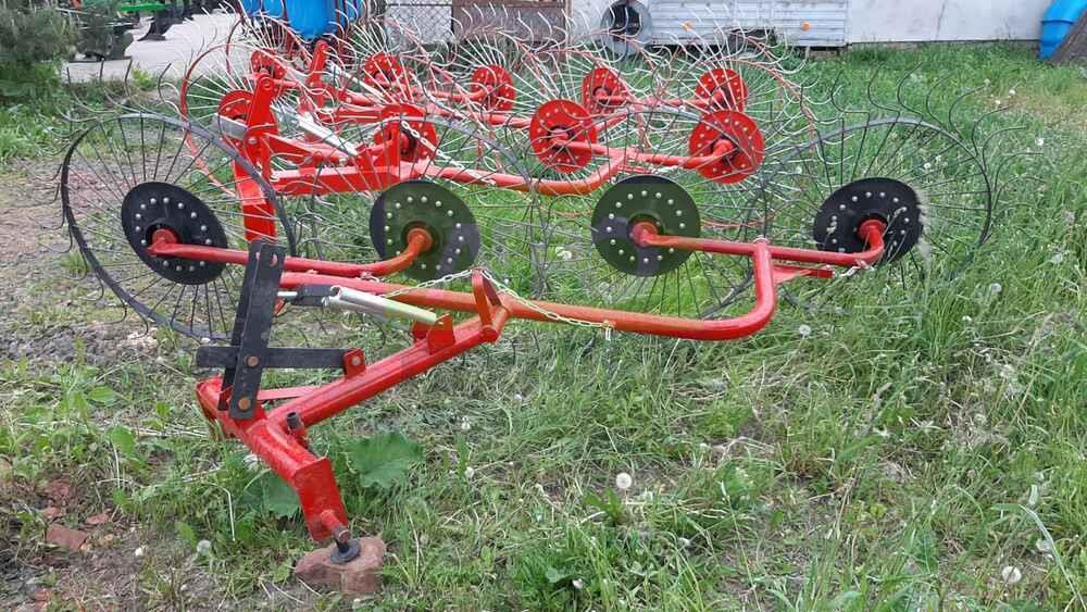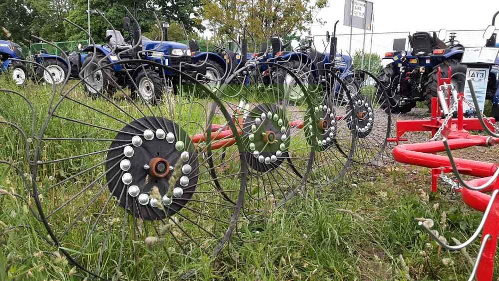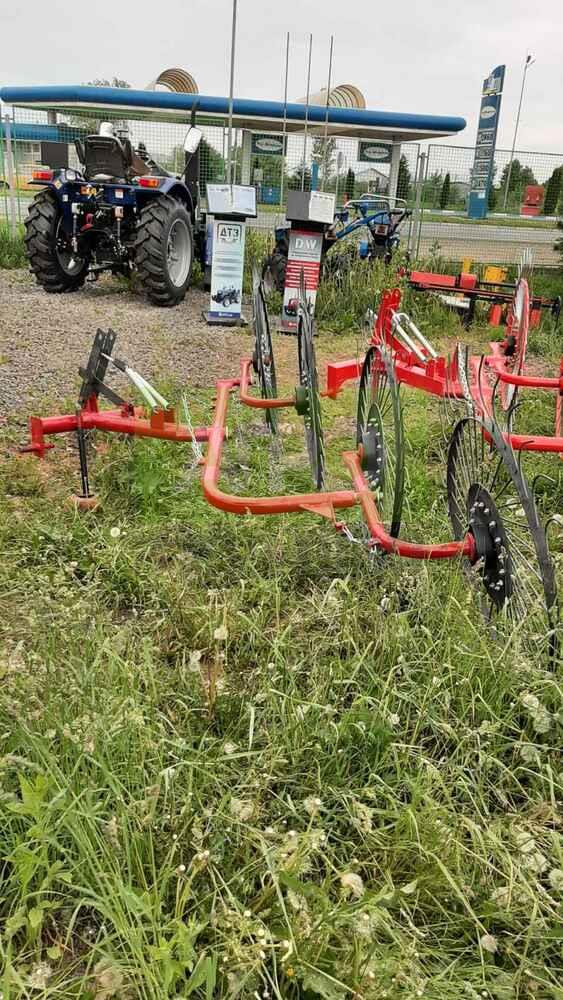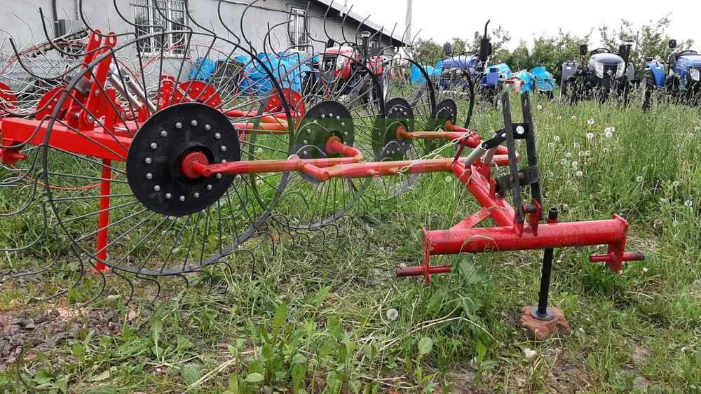 Гребка сонечко на 5 коліс — ефективна сінозгортальна грабарка для мінітракторів Гребка-сонечко на 5 коліс — це надійна й практична грабарка-сіноперекидалка, призначена для згрібання, перекидання та формування валків скошеної трави, сіна, люцерни й інших кормових культур. Вона підходить для використання з будь-яким мінітрактором або трактором, завдяки своїй малій вазі (всього 140 кг) та простій конструкції. Основні переваги: ✅ 5 робочих коліс забезпечують ширину захоплення до 3.1 м, що дозволяє швидко обробляти великі площі; ✅ Два режими роботи: згрібання або перекидання, в залежності від потреб господарства; ✅ Надійна конструкція, проста в обслуговуванні, ідеально пасує для фермерських господарств малого та середнього масштабу; ✅ Працює зі швидкістю до 7–10 км/год, що забезпечує продуктивність 1.1–1.5 га/год; ✅ Легко агрегатується з тракторами від 18 к.с. Технічні характеристики: Робоча ширина: до 3.1 м Кількість коліс: 5 Продуктивність: до 1.5 га/год Габарити: 2.2 × 1.2 × 4.3 м Вага: 150 кг 🔧 Купуючи грабарку сонечко на 5 секцій, ви отримуєте ефективне рішення для збирання сіна, що заощаджує час, паливо та зусилля. Ідеально пасує для українських кліматичних умов і фермерських потреб. ❗ Потрібен варіант на 4 колеса? — також доступний!