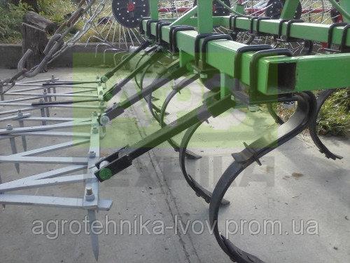 🚜 Культиватор суцільного обробітку 1.8 м — 3 рядки лап Професійний культиватор шириною захвату 1.8 метра з тришаровим компонуванням лап призначений для передпосівного обробітку ґрунту, знищення бур'янів та розпушування землі без перевертання. 🔧 Комплектація (за умовчанням): 11 пружинних лап типу S у три рядки Ціна вказана без борін Можливе доукомплектування зубовими боронами (борона 800×900 мм, 16 зубів) 🛠 Альтернативні варіанти комплектації: 9 стрільчастих лап у три рядки Ширина лап — 270 мм Комбінований варіант: 1-й рядок: стрільчаста лапа 270 мм 2-й рядок: стрільчаста лапа 330 мм 3-й рядок: пружинна лапа типу S ⚙️ Додатково: Можливість встановлення 2 зубових борін для поліпшеного вирівнювання поверхні Борони мають окреме кріплення до рами культиватора, що забезпечує рівномірну роботу 🌱 Переваги: Робота на різних типах ґрунтів Якісне передпосівне розпушування Знищення бур'янів та дрібних решток за один прохід Висока стійкість та ефективність 📍 Рекомендовано для: Середніх і великих фермерських господарств Власників тракторів від 18 до 48 к.с. Роботи на полях з середньою або високою засміченістю бур'янами