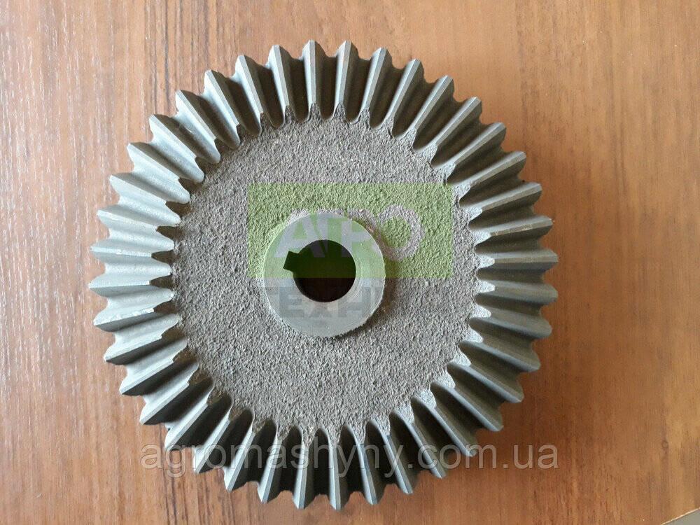 Маленька косозуба шестерня однорядної картоплекопалки — ключовий компонент трансмісії Ця зубчаста шестерня використовується на однорядних навісних картоплекопалках польського виробництва. Привід шестерні забезпечується від карданного валу трактора через вал копалки. Шестерня відповідає за рух транспортера копалки за допомогою ведучих шестерень. Основні параметри: Мала прямозуба шестерня: 15 зубів, діаметр валу 27 мм Велика прямозуба шестерня: 40 зубів, діаметр валу 27 мм Маленька косозуба шестерня: 15 зубів, діаметр валу 30 мм Велика косозуба шестерня: 39 зубів, діаметр валу 30 мм Маленька косозуба шестерня відрізняється кращою плавністю роботи та зниженим рівнем шуму, у порівнянні з прямозубою, що робить її оптимальним вибором для безперебійної роботи копалки.