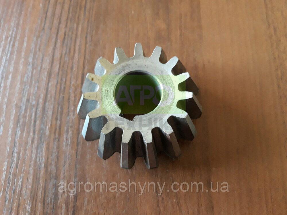 Мала зубчаста шестірня однорядної картоплекопачки — надійна частина для ефективної роботи Ця зубчаста шестірня використовується на однорядних навісних картоплекопачках польського виготовлення. Привід шестірні відбувається через карданний вал трактора і вал копачки, що дозволяє приводити у рух транспортер копачки за допомогою ведучих шестірень. Технічні параметри: Мала прямозуба шестірня: 15 зубів, діаметр валу 27 мм Велика прямозуба шестірня: 40 зубів, діаметр валу 27 мм Мала косозуба шестірня: 15 зубів, діаметр валу 30 мм Велика косозуба шестірня: 39 зубів, діаметр валу 30 мм Шестірні забезпечують плавний та надійний рух транспортера копачки, що підвищує продуктивність та довговічність обладнання. Вірний вибір шестірні відповідно до типу зубів (прямозубі або косозубі) гарантує оптимальну роботу агрегату в польових умовах.