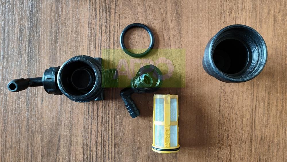 Міжсекційний напірний фільтр для обприскувача Tolveri — надійний захист форсунок від забруднень Міжсекційний напірний фільтр встановлюється безпосередньо на лініях окремих секцій обприскувача, забезпечуючи ретельне очищення робочої рідини. Він ефективно усуває забруднення, що можуть стати перешкодою для функціонування форсунок, особливо тих, що мають дрібні щілинні отвори. Основні характеристики та переваги фільтра: В комплекті — прозорий стакан-відстійник, який витримує високий робочий тиск і стійкий до агресивних речовин, що містяться в обприскувачах і добривах; Всередині стакана розміщена сітка з високим ступенем фільтрації, яку легко зняти для чищення; Фільтр розроблений під стандартний шланг діаметром 12,5 мм, що забезпечує сумісність з більшістю обприскувачів Tolveri; Максимальний робочий тиск — до 10 атмосфер; Пропускна здатність — 55 л/хв при тиску 0,5 атмосфери; Забезпечує безперебійну роботу форсунок, подовжує їхній ресурс і покращує якість обробки рослин. Застосування міжсекційного напірного фільтра є важливим елементом для забезпечення надійної і якісної роботи обприскувача, особливо у разі використання складних препаратів і мінеральних добрив. Це дозволяє уникнути засмічень, зупинок і нерівномірного розпилювання, що позитивно впливає на ефективність захисту рослин та внесення добрив.