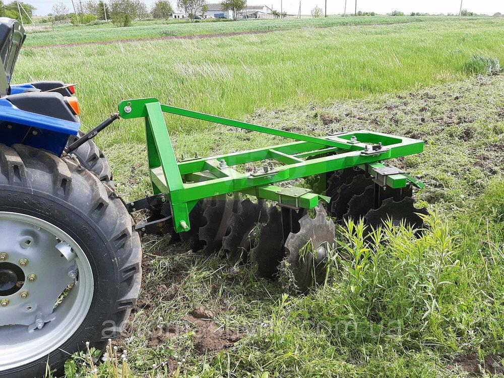 ⚙️ Навісна дискова борона 1,3 м, двосекційна — найкраще рішення для передпосівної обробки Навісна двосекційна дискова борона шириною 1,3 метра — це дієвий інструмент для передпосівного обробітку щільних ґрунтів, подрібнення післяоранкових решток, а також для лущення стерні та розподілення органіки або добрив. 🔧 Основне призначення: Обробка щільного зораного ґрунту (крім кам’янистих) Розривання дернини після оранки луків і пасовищ Внесення і змішування гною, сидератів, вапна або мінеральних добрив Робота на полі одразу після збирання врожаю 🛠 Технічні характеристики: Тип: навісна, 2 секції Ширина захвату: 1,3 м Кількість дисків: 6–7 шт. Діаметр дисків: 510 мм Товщина дисків: 4 мм Глибина обробки: 80–150 мм Маса агрегату: ~320–350 кг Необхідна потужність трактора: від 30 к.с. Кут атаки дисків: 7°–22° (регульований) Матеріал дисків: спеціальна загартована сталь 💡 Переваги: Компактна ширина — ідеально підходить для невеликих тракторів і фермерських господарств Надійна V‑подібна система дискових секцій гарантує якісне подрібнення Опціональне під'єднання струнного або трубчастого котка Підходить для роботи з добривами, гноєм, сидератами Легка в обслуговуванні та транспортуванні 🧰 Сфера застосування: Підготовка поля до посіву Весняно-осіння обробка ґрунту Обробка полів після збирання врожаю Змішування пожнивних залишків і добрив з ґрунтом