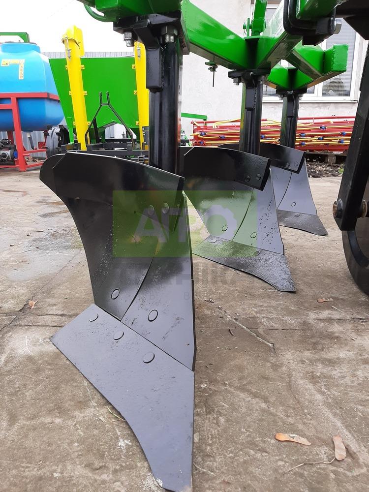 Плуг 3×30 зі стійкою 70 см Трисекційний плуг із шириною захоплення 3×30 см призначено для якісної оранки сільськогосподарських нив на глибину до 30–35 см. Висота стійки — 70 см, що дозволяє використовувати плуг навіть у важких ґрунтових умовах з високою рослинністю. Основні характеристики: Кількість корпусів: 3 Ширина захоплення кожного корпуса: 30 см Загальна робоча ширина: 90 см Висота стійки: 70 см Глибина обробки: до 35 см Плуг забезпечує: повний оборот і подрібнення ґрунту рівномірне внесення добрив та пожнивних решток формування чистої та прямої борозни вирівнювання поверхні ниви без гребенів Підходить для тракторів середнього тягового класу та використовується для обробки як відкритих нив, так і садово-виноградних ділянок.