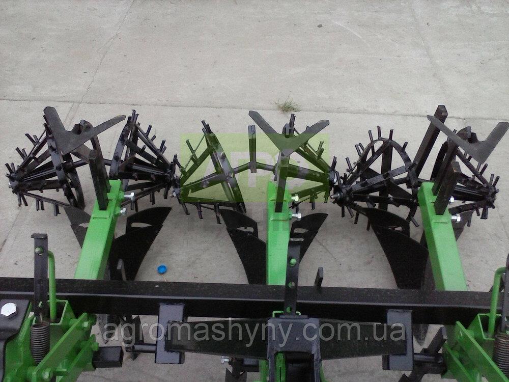 🌱 Культиватор-підгортач 3-секційний — міжрядний культиватор для овочів та коренеплодів Культиватори-підгортачі — це універсальні навісні знаряддя для міжрядного обробітку картоплі, кукурудзи, полуниці та городини, що вирощується на грядках. Вони забезпечують одночасне підгортання, розпушування ґрунту та прополювання бур'янів. 🔧 Комплектація 3-секційної моделі: Рама з трьома секціями У кожній секції: плужок з розсувними крилами, стрільчаста лапа та два долота 🦔 Додатково можливо встановити їжаки (опція): По 2 їжаки на секцію (зліва та справа) Виконують 3 функції: підгортання, прополювання, розпушування Ширина міжряддя для обробітку: від 50 до 75 см 📐 Технічні характеристики: Кількість секцій: 3 Відстань між оброблюваними грядами: 625–675 мм Вага агрегату: 105 кг Необхідна потужність трактора: від 22 кВт (30 к.с.) ⚙️ Переваги: Міцна конструкція Швидкий монтаж до трактора Працює в три етапи за один прохід Ідеальний для невеликих фермерських господарств
