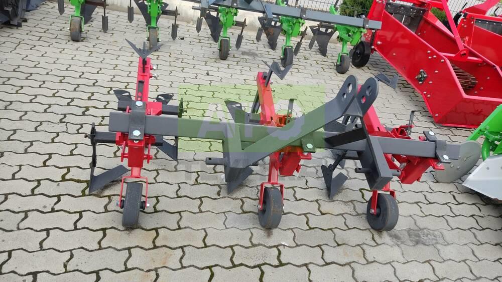 Культиватор полольник-окучник міжрядного обробітку Virax — багатофункціональне знаряддя для ефективного догляду за грядками Культиватор полольник-окучник Virax — це спеціалізований інструмент, призначений для міжрядного обробітку картоплі, коренеплодів, овочів, полуниці, кукурудзи та інших культур. Він допомагає видаляти бур’яни, розпушувати ґрунт між рядами, підгортати рослини і формувати гряди висотою до 60 см, що забезпечує кращий розвиток та врожайність культур. Основні особливості культиватора міжрядного обробітку Virax: Кількість робочих секцій: 3 або 5, котрі міцно кріпляться до рами. Комплектація однієї секції включає плужок з розсувними крилами, стрільчату лапу та два долота. За один прохід культиватор виконує три операції: прополювання міжрядь, розпушування ґрунту та підгортання грядок. Додатково культиватор може бути укомплектований подвійними їжаками — спеціальними робочими органами, котрі розпушують, прополюють і підгортають ґрунт у міжряддях шириною від 50 до 75 см. На одну секцію припадає одна пара їжаків (по одному з кожного боку). Їжаки не входять до стандартної комплектації та замовляються окремо. Технічні характеристики культиватора Virax: Параметр 3 секції 5 секцій Відстань між грядами 625–675 мм 625–675 мм Маса машини 105 кг 175 кг Потужність трактора 22 кВт / 30 к.с. 35 кВт / 48 к.с. Культиватор Virax — це надійний та ефективний агрегат для міжрядного обробітку, котрий значно полегшує догляд за рослинами, підвищує якість ґрунту і збільшує врожайність. Завдяки простоті конструкції та можливості додаткового оснащення їжаками, він ідеально підходить як для професійних фермерів, так і для власників приватних господарств. Звертайтеся до нас, щоб купити культиватор полольник-окучник Virax за вигідною ціною та отримати фахову консультацію з вибору і експлуатації!