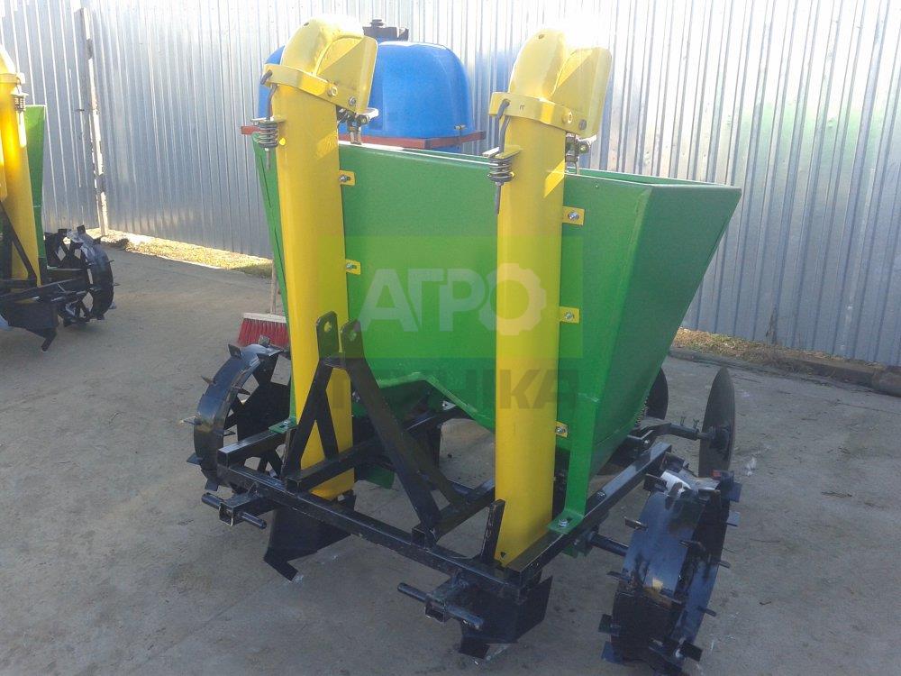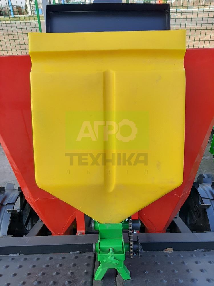 Переваги та особливості: Компактність і маневровість. Міжряддя 60 см дозволяє висаджувати картоплю на невеликих ділянках або в тепличних господарствах. Рівномірна посадка. Елеваторна система подачі з металевими ложками гарантує точність висаджування навіть на нерівному ґрунті. Міцна конструкція. Всі елементи виготовлені зі сталі, що забезпечує тривалий термін служби навіть за інтенсивної експлуатації. Регульований крок посадки. Залежно від сорту картоплі можна встановити відстань між бульбами — 29, 32 або 35 см. Зручність в обслуговуванні. Простий доступ до ланцюгів, сошників та окучників полегшує очищення та технічний догляд. Підходить для тракторів невеликої потужності. Ідеальне рішення для мінітракторів і малих фермерських господарств. Область застосування: Призначення: механізована посадка картоплі з міжряддям 60 см. Культури: картопля калібру 30–60 мм. Тип ґрунтів: середні та легкі, піщано-глинисті ґрунти. Рекомендації з експлуатації: Перед роботою перевірити натяг ланцюгів і стан ложок. Глибину посадки виставити згідно сорту картоплі та вологості ґрунту. Після завершення сезону очистити бункер і транспортери, змастити рухомі елементи. Купуйте дворядкову саджалку картоплі в “Агротехніка Львів” — забезпечте якісну посадку та економію часу вже з перших гектарів! 🚜