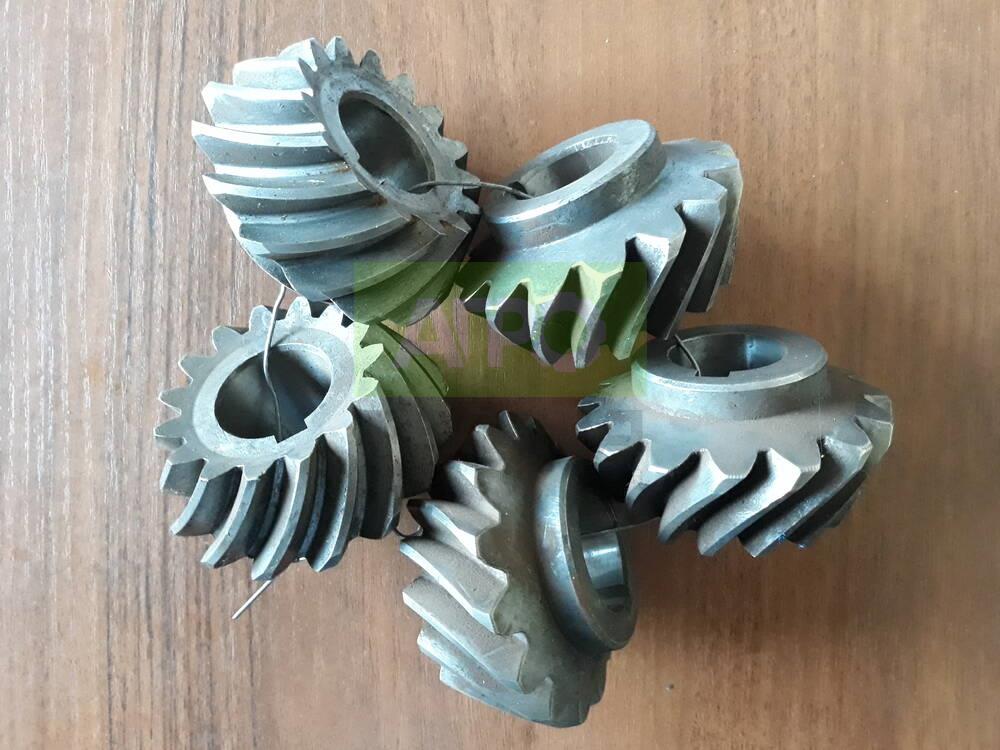 Велика косозуба шестірня однорядної картоплекопалки — ключовий складник трансмісії Ця зубчаста шестірня використовується на однорядних навісних картоплекопалках польського виробництва. Привід шестірні відбувається від карданного валу трактора через вал копалки. Вона забезпечує рух транспортера копалки завдяки взаємодії з провідними шестірнями. Основні технічні параметри: Мала прямозуба шестірня: 15 зубів, діаметр валу 27 мм Велика прямозуба шестірня: 40 зубів, діаметр валу 27 мм Мала косозуба шестірня: 15 зубів, діаметр валу 30 мм Велика косозуба шестірня: 39 зубів, діаметр валу 30 мм Косозубі шестірні забезпечують більш плавну та тиху роботу механізму в порівнянні з прямозубими, що збільшує надійність і довговічність картоплекопалки.