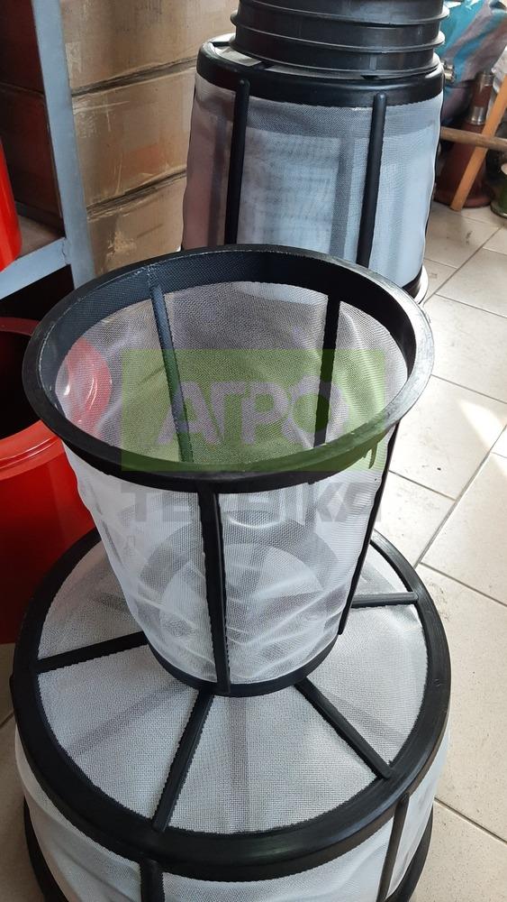 Ситечко для обприскувача в бочку Ситечко встановлюється в заливну горловину бочки обприскувача та призначене для очищення води від механічних домішок, а також зручного засипання хімічних речовин. Виготовлене з міцного пластику, стійкого до агресивних середовищ. Наявні три варіанти сит: Мале — зовнішній діаметр зверху: 210 мм, внутрішній: 190 мм, висота: 260 мм. Середнє — зовнішній діаметр зверху: 300 мм, внутрішній: 280 мм, висота: 230 мм. Велике — зовнішній діаметр зверху: 400 мм, внутрішній: 375 мм, висота: 240 мм. Підходить до більшості моделей обприскувачів польського та вітчизняного виготовлення.