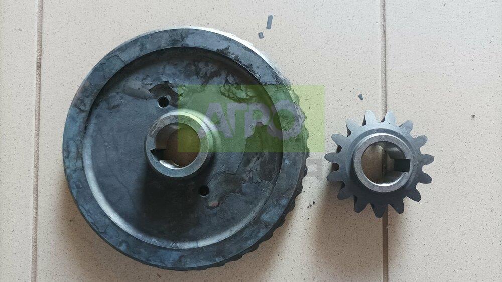 🔩 Велика конічна шестерня Z-41 (хвостовик + планетарка) для картоплекопачки Z-609 Комплект великої конічної шестерні (z=41) та планетарки — ключовий складник редуктора дворядної причіпної картоплекопачки польського виробництва, зокрема моделі Z-609 (арт. 8255-609-100-046). Застосовується для передачі обертального моменту з карданного валу на транспортер копачки. 🛠 Призначення: Привід транспортера копачки через редуктор Сумісна з копачками Z-609, Rolmet та аналогами польського виробництва 📐 Характеристики: Кількість зубів: 41 (велика шестерня) Діаметр валу: 34 мм Матеріал: легована сталь, термічна обробка Тип: конічна, прямозуба Комплектність: хвостовик + планетарка (2 шт.) ✅ Переваги: Надійна передача зусилля без прослизання Стійкість до великих навантажень і вібрацій Проста заміна без потреби знімати вал Довговічність навіть при інтенсивному сезонному використанні 📌 Рекомендується встановлювати разом з малою шестернею Z-15 для повної синхронізації редуктора.