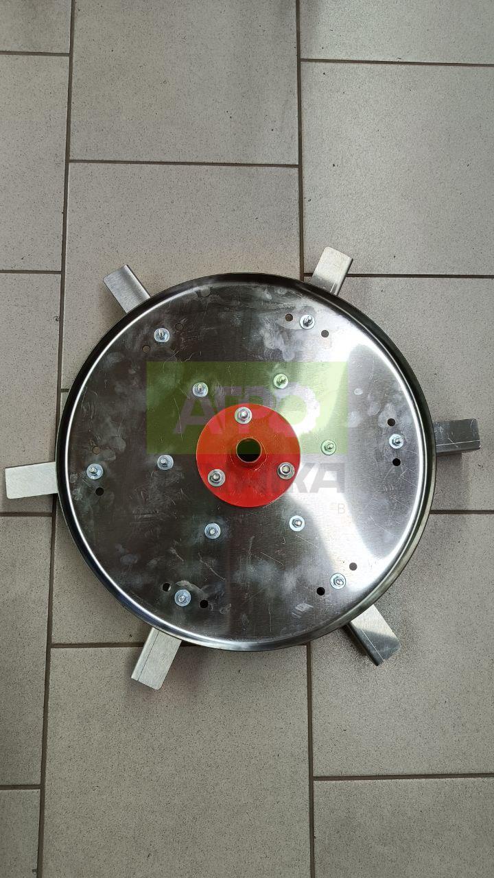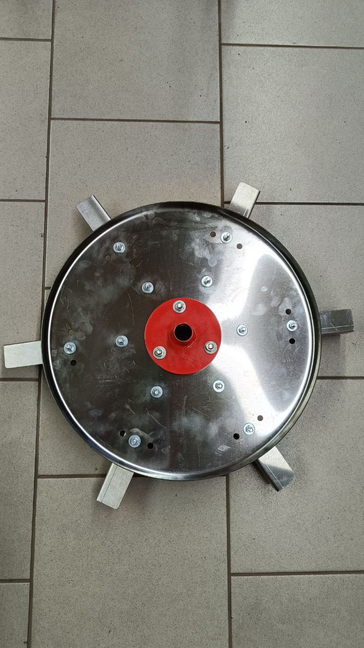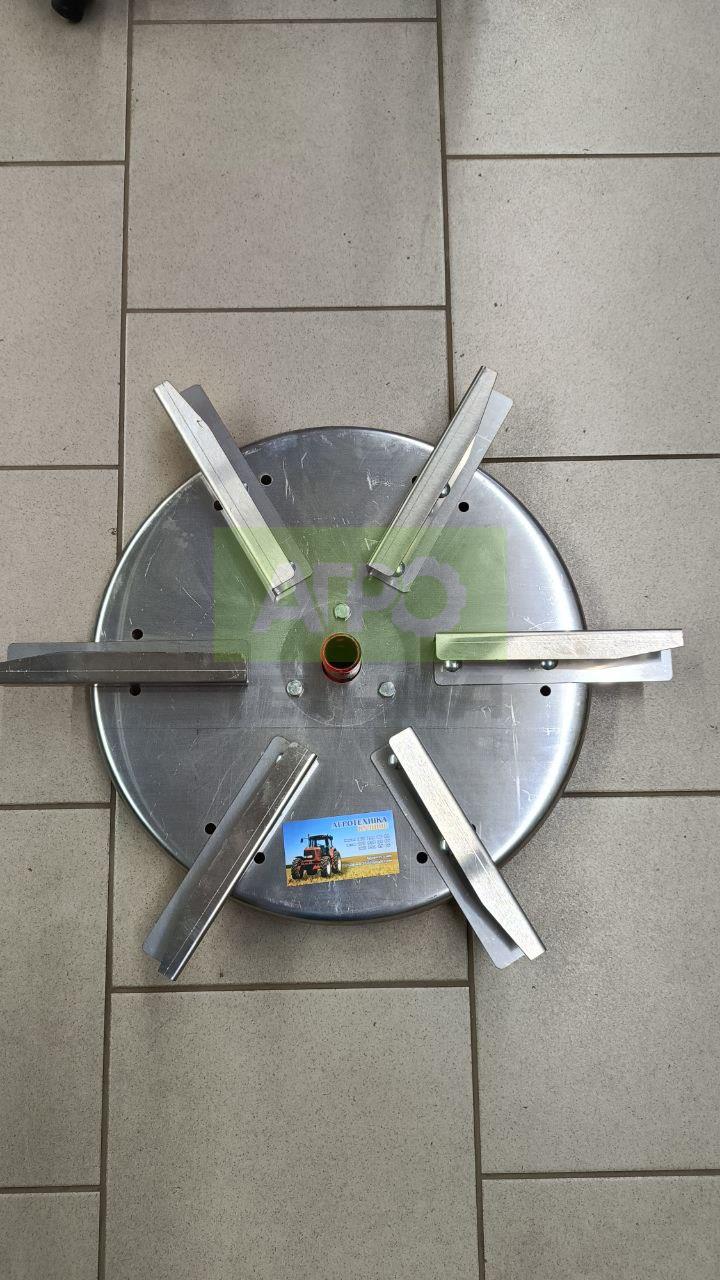Покращена тарілка (диск) 6 лопатей для розкидача мінеральних добрив з нержавіючої сталі. Посилена заміна стандартної 4-лопатевої тарілки. Покращена тарілка (диск) на 6 лопатей для розкидача мінеральних добрив — це модернізована версія стандартного 4-лопатевого диска. Забезпечує більш рівномірне внесення добрив, кращу ширину розкидання та зменшення перевитрати матеріалу. Підходить для навісних розкидачів 200–500 кг. 🔄 Чим краща за стандартну 4-лопатеву? ✅ Більше лопатей — рівномірніше покриття, 6 лопатей формують щільніший та стабільніший потік гранул, що зменшує «смугастість» поля. ✅ Краща ширина розкидання Порівняно зі стандартною 4-лопатевою тарілкою: • рівномірніше перекриття • стабільна ширина розкидання 8–14 м (залежить від моделі та обертів) ✅ Менші втрати добрив ✅ Стабільна робота на різних типах добрив Працює з: • аміачною селітрою • карбамідом • NPK • гранульованими комплексними сумішами 🚜 Сумісність з технікою Підходить до навісних розкидачів: • 200 кг • 300 кг • 400 кг • 500 кг 💡 Чому варто замінити стандартну 4-лопатеву? Стандартна 4-лопатева тарілка: • дає меншу щільність потоку • має більші "порожні зони" • гірше працює при знижених обертах Покращена 6-лопатева: • забезпечує стабільний розподіл • краще працює на низьких і середніх обертах • дає більш професійний результат внесення
