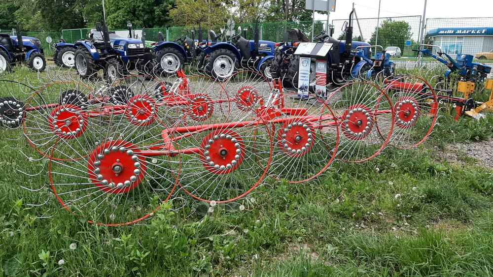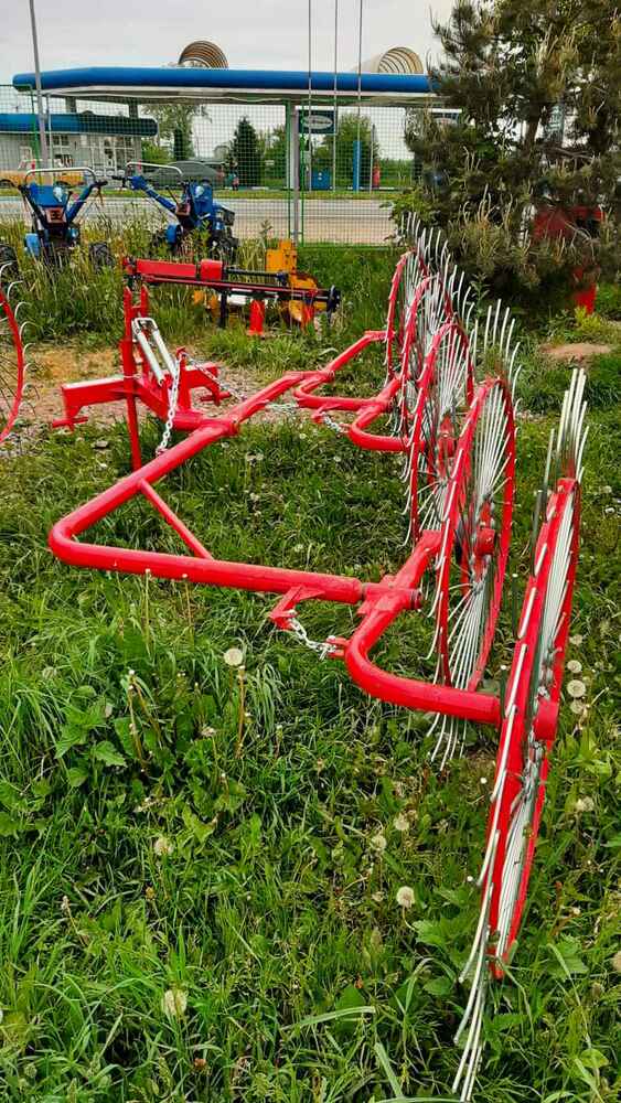 ☀️ Грабарка «Сонечко» на 5 секцій — потужна сіноперекидачка для трактора Грабарка-сіноперекидачка типу "Сонечко" (5 коліс) — дієвий інструмент для ворошіння, перекидання та згортання сіна та скошеної трави. Ідеальна для заготівлі кормів у невеликих і середніх господарствах. 🔧 Технічні параметри: Кількість секцій: 5 (5 коліс) Тип кріплення: навісна на триточку Робоча ширина в режимі згортання: 2.1 м Робоча ширина в режимі ворошіння: до 3.1 м Продуктивність: до 1.5 га/год Робоча швидкість: до 10 км/год Габарити (ШхВхД): 2.2 × 1.2 × 4.3 м Вага: 150 кг 💡 Завдяки змінному положенню коліс, грабарку можна застосовувати в двох режимах: для згортання валків або для ворошіння сіна. Підходить для роботи з мінітракторами та тракторами потужністю від 24 к.с.