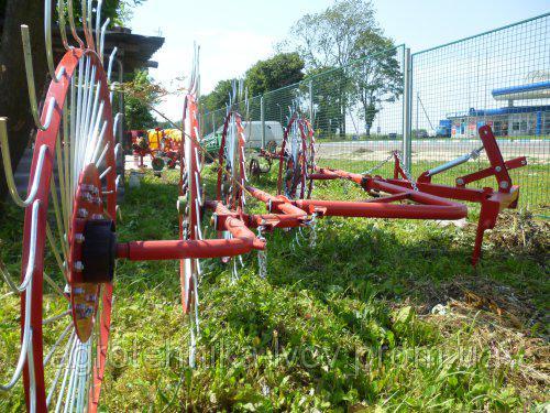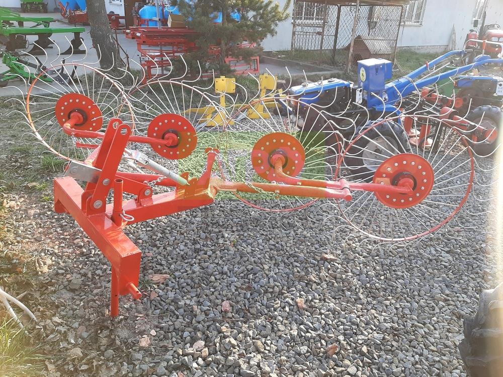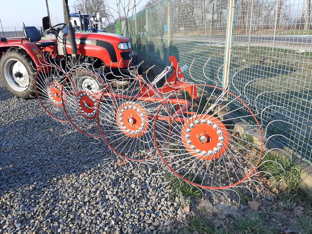 Гребка сонечко на 4 колеса — надійна грабарка для згрібання сіна Гребка-сонечко на 4 колеса — це компактна й ефективна сіноперекидалка, призначена для перекидання та збирання скошеної трави, люцерни, сіна та інших рослинних решток. Завдяки невеликій вазі (всього 130 кг), гребка ідеально підходить для роботи з мінітрактором або легким трактором, забезпечуючи високу маневреність та продуктивність. Чому варто купити саме цю гребку: 🔁 2 режими роботи — збирання або перекидання валків; ⚙️ Робоча ширина до 2.8 м — ідеально для ділянок до 1.2 га/год; 🚜 Легка у використанні — агрегатується з тракторами від 18 к.с.; 🔩 Міцна та проста конструкція — мінімум обслуговування; 📦 Підходить для заготівлі сіна та догляду за кормовою базою. Технічні характеристики: Кількість коліс: 4 Робоча ширина: до 2.8 м Продуктивність: до 1.2 га/год Робоча швидкість: до 10 км/год Габарити: 1.7 × 1.2 × 3.5 м Вага: 130 кг 🟢 Грабарка сонечко на 4 колеса — це оптимальний вибір для невеликих господарств, які цінують простоту, надійність та ефективність при згрібанні сіна. Замовляйте зараз — і полегшіть заготівлю кормів уже цього сезону!