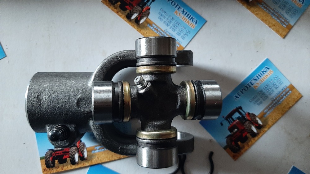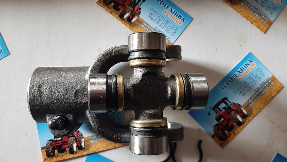 Хрестовини для карданних валів сільськогосподарської техніки — надійне з’єднання валів під змінним кутом Хрестовина карданного валу сільгосптехніки — це важливий елемент, призначений для з’єднання двох вилок, які обертаються під змінним кутом. Вона кріпиться на вилці за допомогою стопорних кілець, які встановлюються під чашкою або ззовні чашки, забезпечуючи міцне та надійне з'єднання. Дві вилки, з'єднані хрестовиною, утворюють шарнір карданного валу або шарнір Гука. Завдяки цьому шарніру здійснюється передача крутного моменту між валом відбору потужності (ВВП) та валом прийому потужності на різних видах сільськогосподарської техніки. Карданні шарніри розраховані на передачу обертів з частотою 550 об./хв. та 1100 об./хв., з робочим кутом нахилу до 22 градусів, що дозволяє гнучко реагувати на зміни положення валів під час роботи агрегатів. Основні застосування: Використовуються у сільгоспмашинах, де необхідно компенсувати зміну кута між осями валів через рухливість чи зміщення опор; Забезпечують надійну передачу потужності при змінних кутах нахилу між валами. Розміри вилок карданного валу: Вилка 6 шліців, діаметр валу 29.0 х 35.0 мм; Вилка 8 шліців, діаметр валу 32.0 х 38.0 мм. Найпоширеніші розміри хрестовин для сільгосптехніки: 22.0 х 54.0 мм; 23.8 х 61.35 мм; 27.0 х 70.0 мм; 28.0 х 73.0 мм; 30.0 х 88.0 мм; 30.2 х 80.0 мм. Обирайте якісні хрестовини карданних валів для вашої сільськогосподарської техніки, щоб забезпечити довговічну та надійну роботу агрегатів за будь-яких умов.