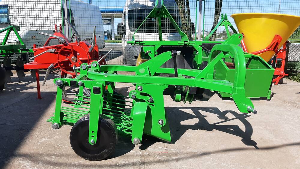 🚜 Картоплезбирачка однорядна вібраційна Bomet — надійність та ефективність копання Однорядна вібраційна картоплезбирачка Бомет польського виробництва — це професійне рішення для якісного і швидкого збирання картоплі. Агрегатується з мінітракторами, китайськими тракторами потужністю від 24 к.с., а також тракторами класу Т-25. Завдяки вібраційній системі копачка не просто викопує, але й ефективно відділяє бульби від ґрунту, мінімізуючи пошкодження картоплі. 🔧 Основні технічні характеристики: Довжина: 1650 мм Ширина: 800 мм Висота: 850 мм Ширина викопування: 600 мм Глибина викопування: до 150 мм Вага: 170 кг Продуктивність: до 0.35 га/год Рекомендована швидкість руху: до 5 км/год 🛠 Переваги моделі: Рухомий ніж з гартованої сталі 65Г — точне та довговічне копання Вібраційний механізм з приводом від кардана — ефективне очищення бульб Регулювання кута решітки до 20° — адаптація під тип ґрунту Зміщений центр навіски — точна праця в міжряддях Колеса з підшипниками на гумових втулках — м’який хід і стійкість Посилені підшипники 6307 RS — підвищена надійність ⚙️ Призначення: Збирання картоплі в приватних господарствах Підходить для використання в міжряддях на рівнинній місцевості Розрахована на обробку полів середньої площі