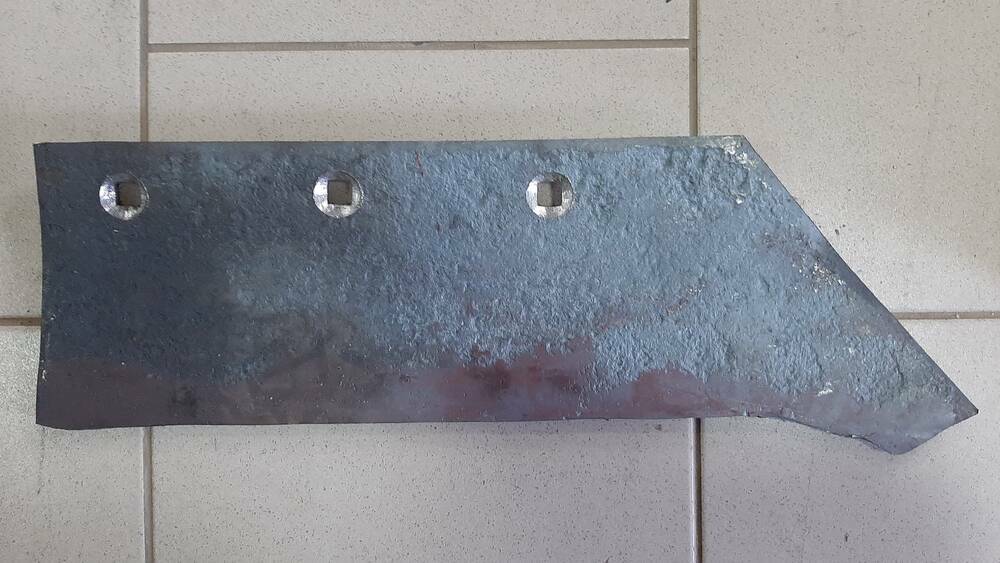 Лемех польського плуга на три отвори широкий — важливий та міцний робочий компонент для ефективного орання ґрунту. Він призначений для плугів з шириною захоплення корпуса 30 та 35 см і виготовлений з високоякісної литої сталі, що гарантує довговічність і стійкість до зношування навіть за інтенсивної експлуатації. Технічні властивості лемеха: Висота: 150 мм Ширина по верху: 385 мм Ширина по низу: 530 мм Відстань між центрами отворів: 115 мм Товщина металу: 10 мм Лемех має характерну дзьобоподібну форму, що забезпечує ефективне підрізання шару ґрунту та його направлення на відвал плуга, що є ключовим для якісного і рівномірного розпушення землі. Якість геометрії лемеха безпосередньо впливає на результативність оранки, тому важливо використовувати оригінальні деталі від виробника. Якщо ви шукаєте надійний лемех польського плуга на три отвори широкої комплектації, звертайтеся до нас. Ми пропонуємо широкий вибір сільськогосподарських запчастин за вигідними цінами, що забезпечить довгу службу вашої техніки та максимальну ефективність у роботі.