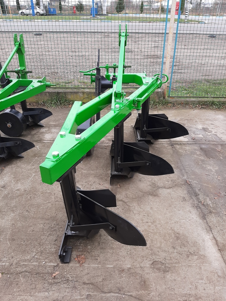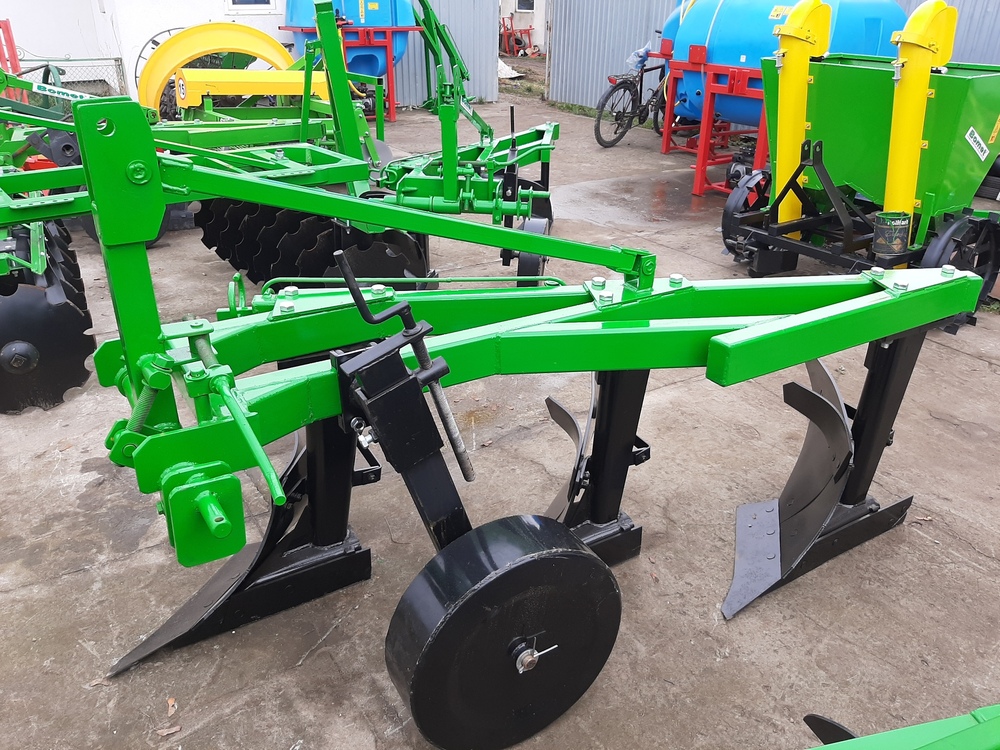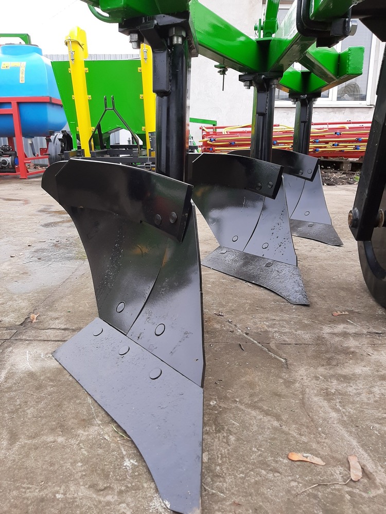 Плуг 3×30 зі стійкою 70 см Трисекційний плуг із шириною захоплення 3×30 см призначено для якісної оранки сільськогосподарських нив на глибину до 30–35 см. Висота стійки — 70 см, що дозволяє використовувати плуг навіть у важких ґрунтових умовах з високою рослинністю. Основні характеристики: Кількість корпусів: 3 Ширина захоплення кожного корпуса: 30 см Загальна робоча ширина: 90 см Висота стійки: 70 см Глибина обробки: до 35 см Плуг забезпечує: повний оборот і подрібнення ґрунту рівномірне внесення добрив та пожнивних решток формування чистої та прямої борозни вирівнювання поверхні ниви без гребенів Підходить для тракторів середнього тягового класу та використовується для обробки як відкритих нив, так і садово-виноградних ділянок.