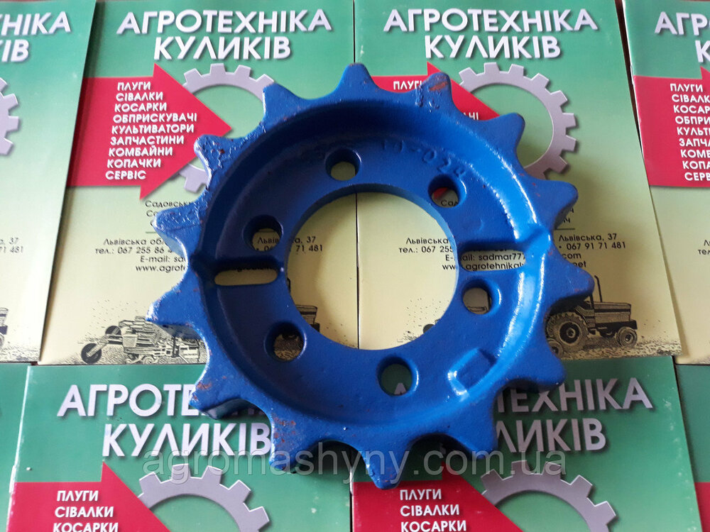 Ведуча шестерня для дворядного картоплекопача Z-609 / Rolmet Ведуча шестерня — це один з ключових компонентів трансмісійного механізму у дворядних причіпних картоплекопачах польського виготовлення. Вона передає зусилля від приводного вала на передній транспортер, забезпечуючи його обертання та стабільну функцію під час викопування картоплі. 🔧 Конструктивні особливості: Виготовлена зі зносостійкої сталі, що витримує тривалі навантаження та високий рівень вібрації. Має 14 зубів з точним профілем, що забезпечує безперебійне зачеплення із транспортером. Універсальна для копачів Rolmet, Agromet Z-609 та інших аналогічних моделей польського виготовлення. Зручність монтажу: шестерня має розрізну конструкцію, тому не потрібно демонтувати вал — встановлення відбувається за лічені хвилини. 📐 Технічні характеристики: Тип: ведуча (зубчаста) шестерня Кількість зубів: 14 Сумісність: Z-609, Rolmet, польські дворядні копачі Матеріал: загартована легована сталь Особливість: розрізна — зручна заміна без зняття вала 💡 Переваги: Проста установка без демонтажу вузлів Тривалий ресурс роботи, навіть при високих навантаженнях Ідеальне зачеплення з елементами транспортера Підходить як для нових, так і для вживаних копачів після ремонту 📌 Рекомендується для повної заміни в парі з: Переднім транспортером, подвійними пальцями, роликами, трясуном — для повного оновлення тягової частини.